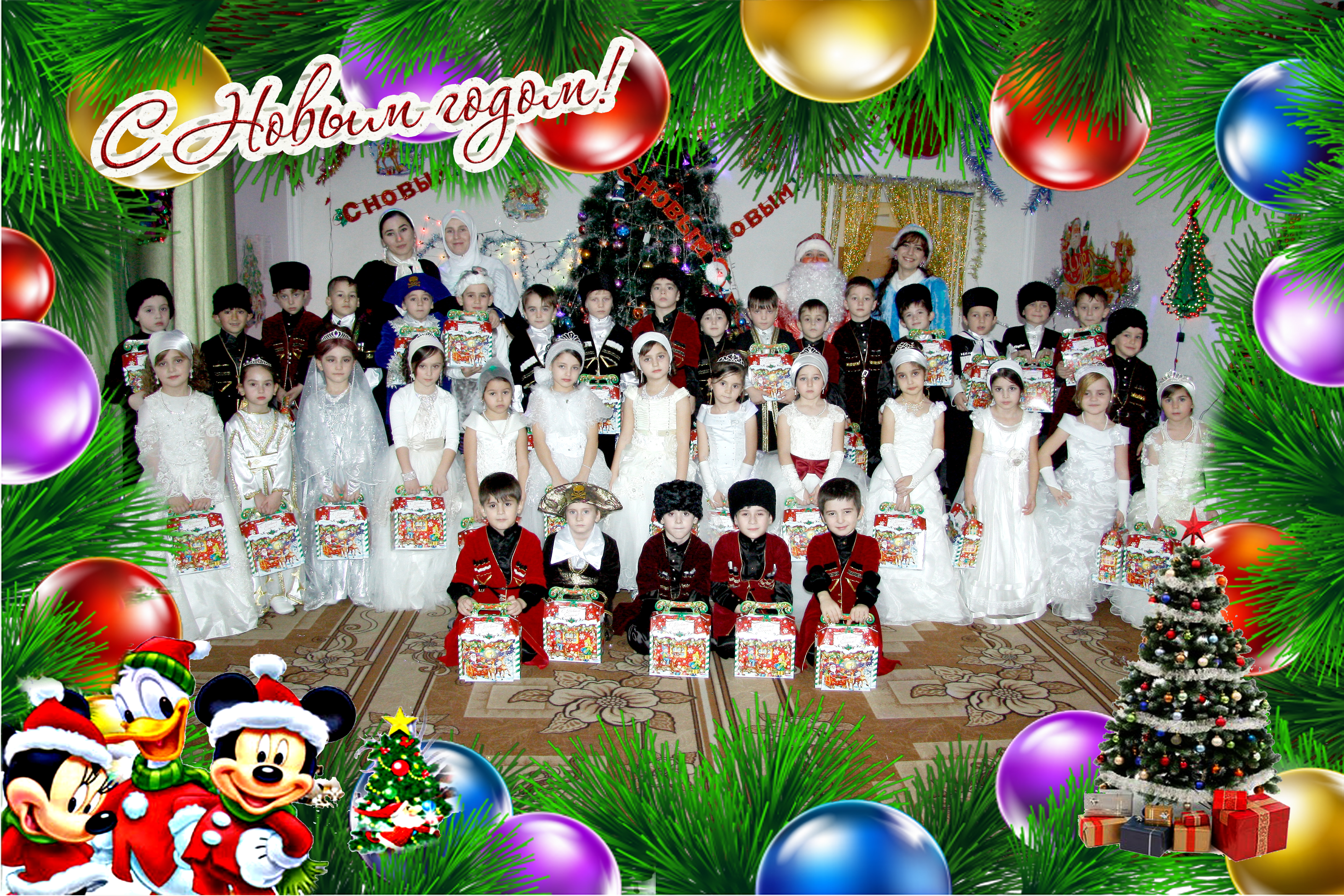 Самый любимый праздник, как взрослых, так и детей, конечно же, Новый год!25 и 28 декабря 2015 года в нашем саду прошли новогодние утренники для детей.. Подготовка началась задолго до наступления праздников. Воспитатели с детьми разучивали стихотворения, проводили беседы на тему Нового года, новогодних традиций, музыкальный руководитель разучивала с воспитанниками песни и пляски. Огромную работу провели по оформлению групп и музыкального зала. Дети пришли на представление нарядные, весёлые в предвкушении праздника. И их надежды оправдались. Воспитатели, участвовавшие, в новогоднем представлении проявили себя хорошими артистами, показав всё своё творческое мастерство, артистизм, задор и организаторские способности. Им пришлось перевоплотиться в разных героев.Дети, участвующие в утренниках, погрузились в мир сказок, неожиданных приключений, песен, хороводов, танцев, конкурсов, игр и сюрпризов.Дети читали стихи Деду Морозу и Снегурочке, фотографировались с персонажами, получали новогодние подарки. Родительский комитет выразил слова благодарности коллективу детского сада и поздравил с наступающим 2016 годом.
