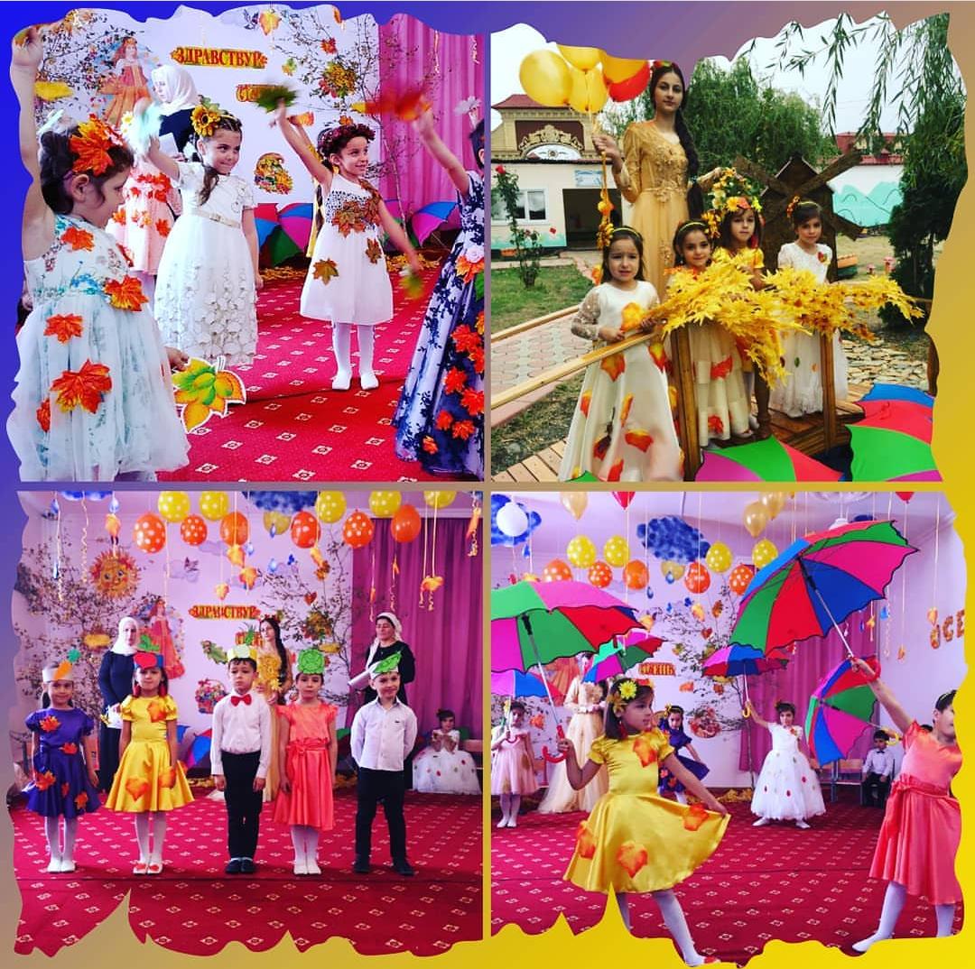 Для проведения праздника музыкальным руководителем Наибовой Б.Ш. был оформлен музыкальный зал в соответствии с тематикой праздника. И хоть осень и называют «унылой порой», тем не менее, кто как не дети больше всего радуются ярким разноцветным листьям, опавшим с деревьев.Ребята с нетерпением ждали осенних развлечений, и не зря, ведь они прошли очень весело и интересно. К детям в гости пришла Королева Осень. Вместе с Королевой Осени ребята весело и задорно играли, пели и читали стихи.